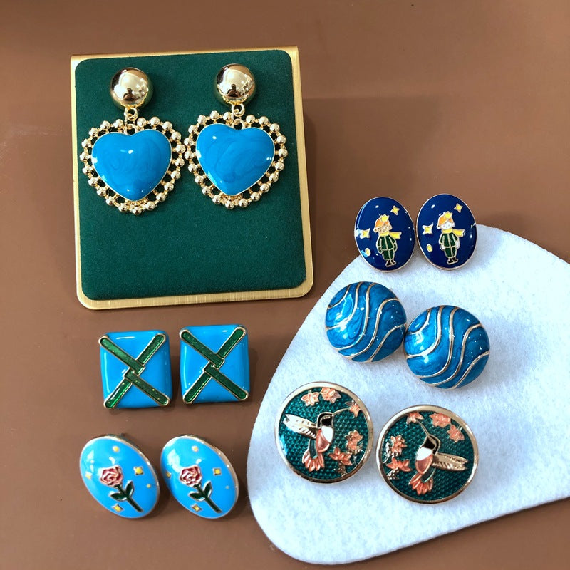 Wholesale Vintage Sky Blue Enamel Alloy Earrings