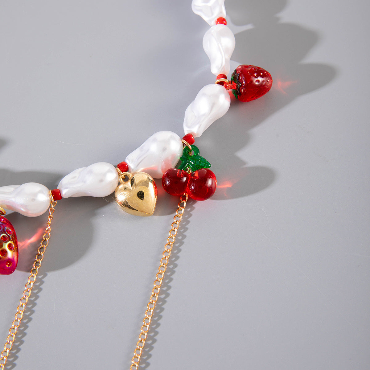 Wholesale Alien Pearl Strawberry Cherry Tassel Valentine' s Day Necklace