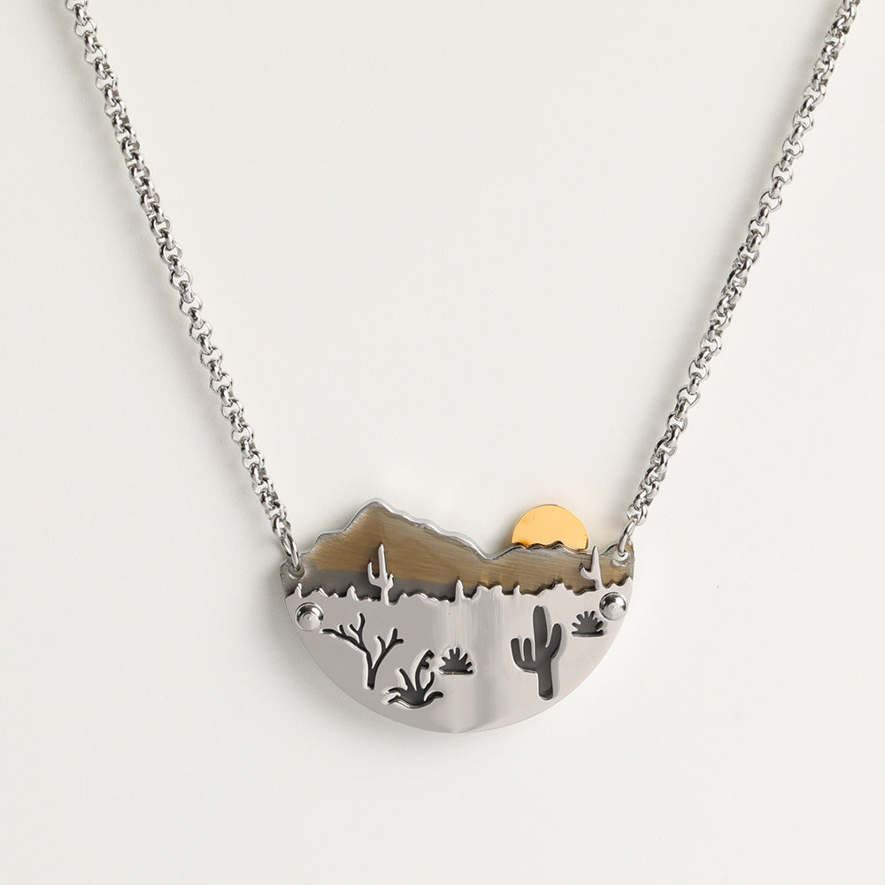 Wholesale Sunset Mountains Pendant Necklace Stainless Steel