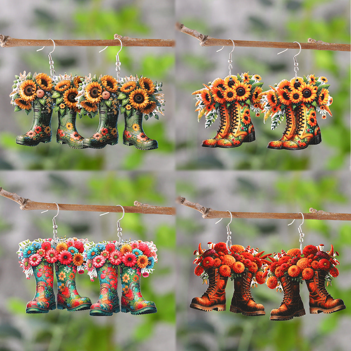 Wholesale Western wind cowboy boots wooden double-sided earrings