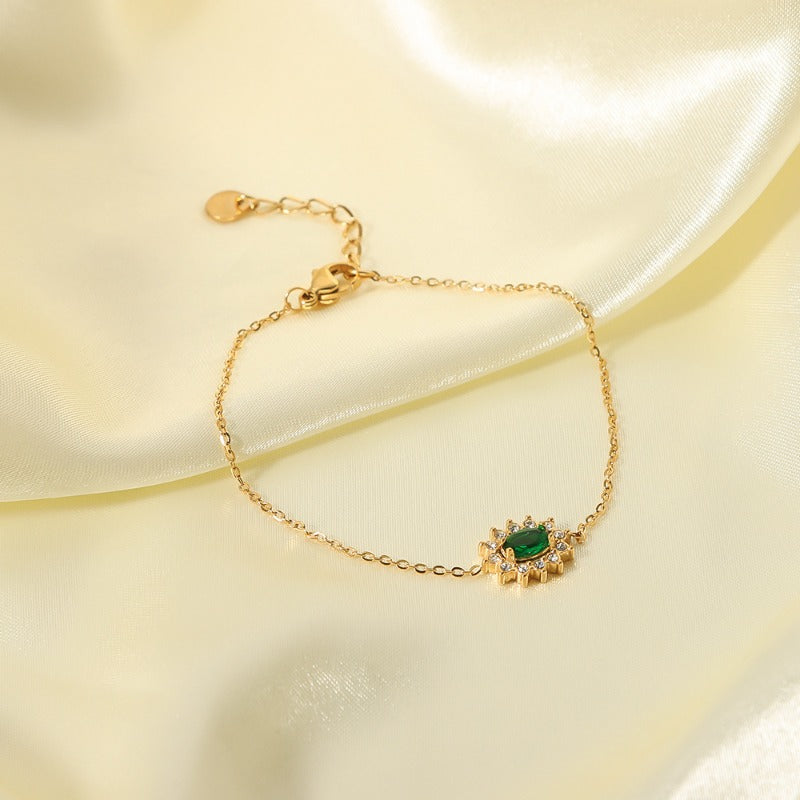 Wholesale French Elegant Geometric Lace Stainless Steel Bracelet with Green Zirconia