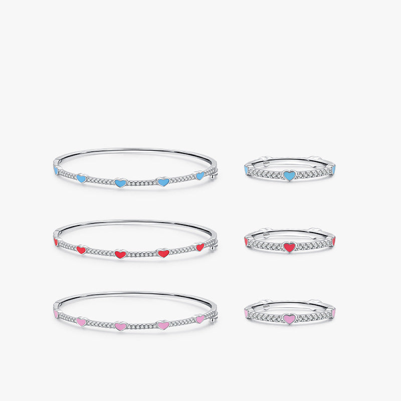 Wholesale S925 Sterling Silver Rainbow Heart Diamond Ring Bracelet OLY-BT-MoD002