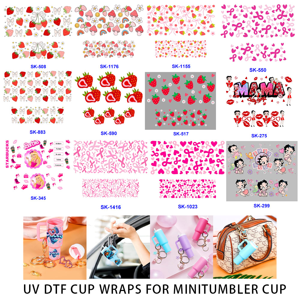 Wholesale 8pcs Strawberry Bow Cute Element Mini Cup UV DTF Wraps