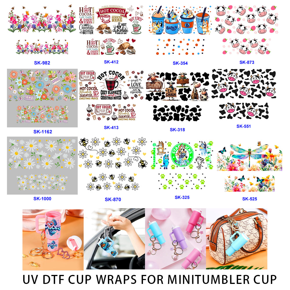 Wholesale 8pcs Cute Cartoon Cow Mini Cup UV DTF Wraps