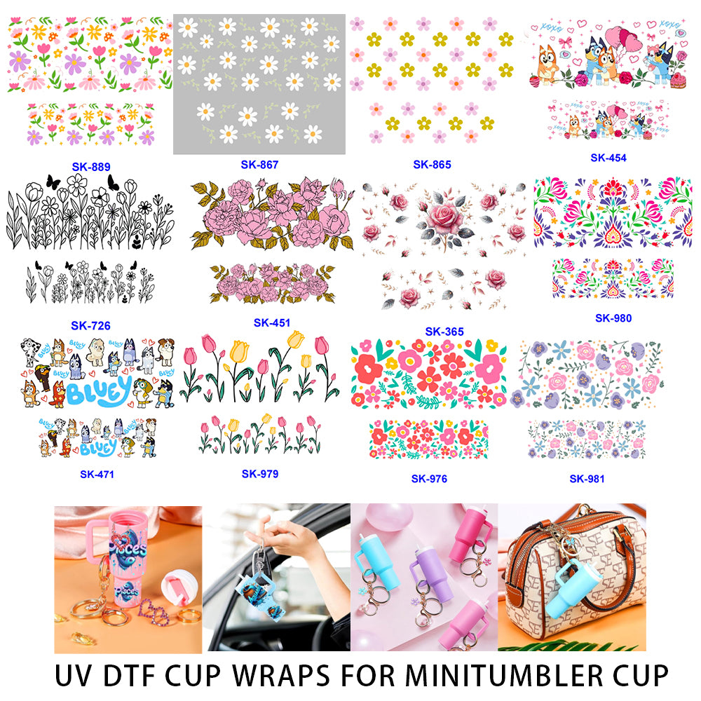 Wholesale 8pcs Beautiful and Colorful Blooming Flowers Mini Cup UV DTF Wraps