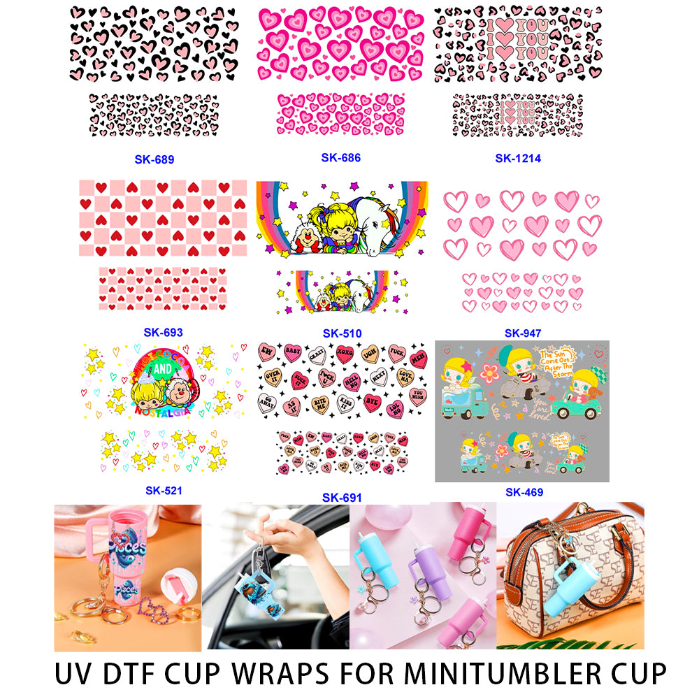 Wholesale 8pcs Kind and Colorful Little Girl Heart Mini Cup UV DTF Wraps