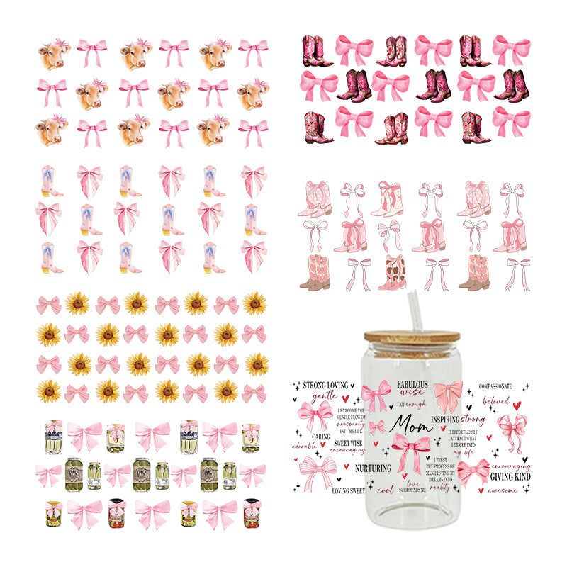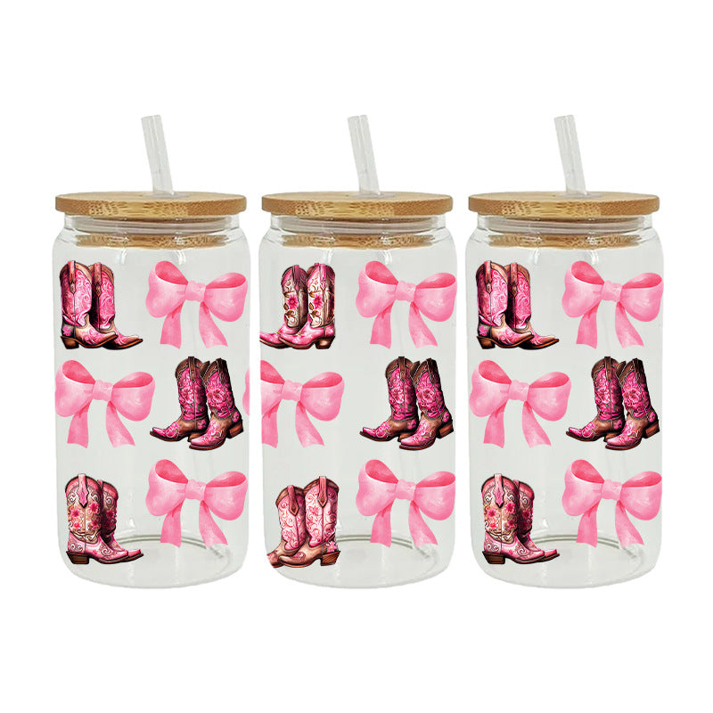 Wholesale Pink bow boots 16oz Cup UV DTF Wraps