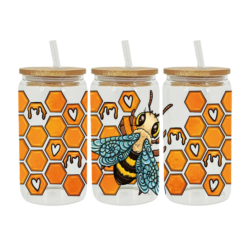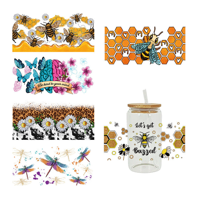 Wholesale Flowers dragonflies bees 16oz Cup UV DTF Wraps