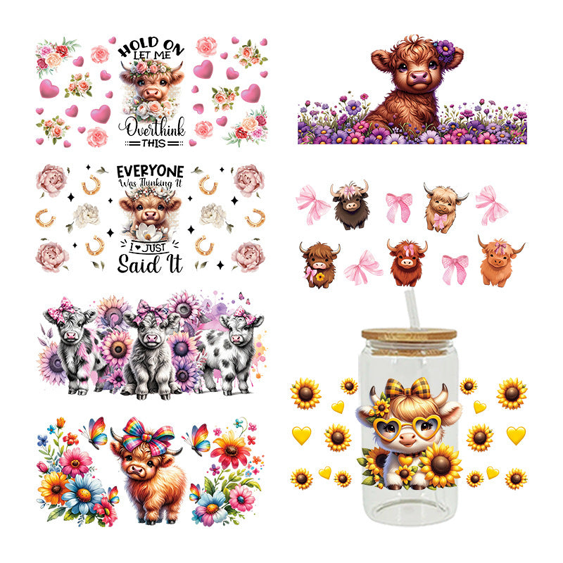 Wholesale Colorful flower cute cows 16oz Cup UV DTF Wraps