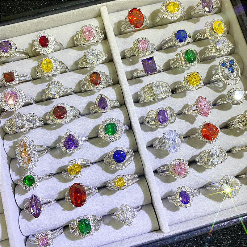 Wholesale S925 Silver Diamond Sapphire Adjustable Ring