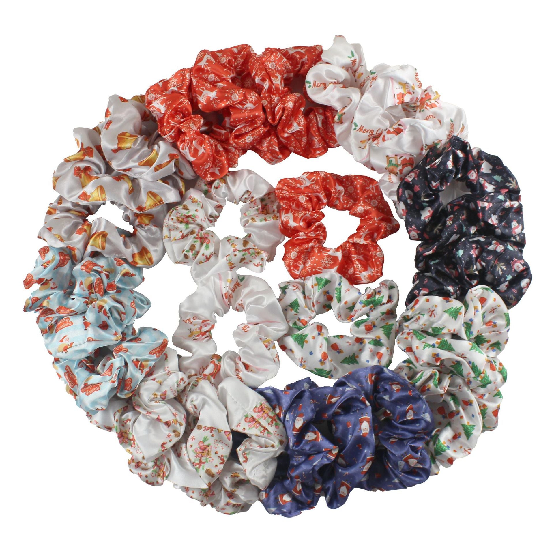 Wholesale Satin Printed Christmas Fabric Hair Tie