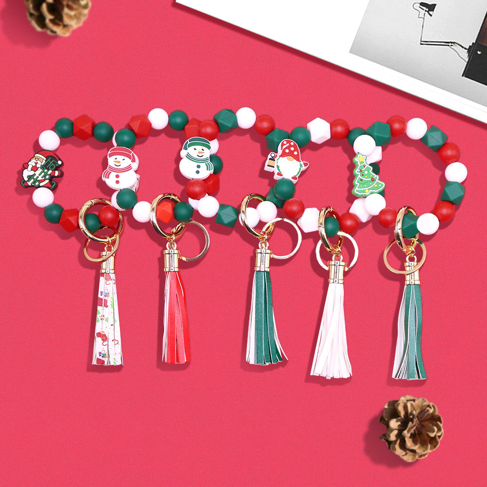 Wholesale 10PCS Santa Claus Christmas Silicone Beaded Wrist Keychain