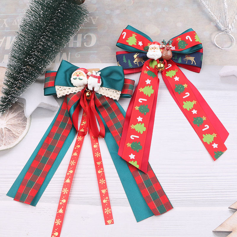 Wholesale Christmas Children's Bow Fabric Hairpins