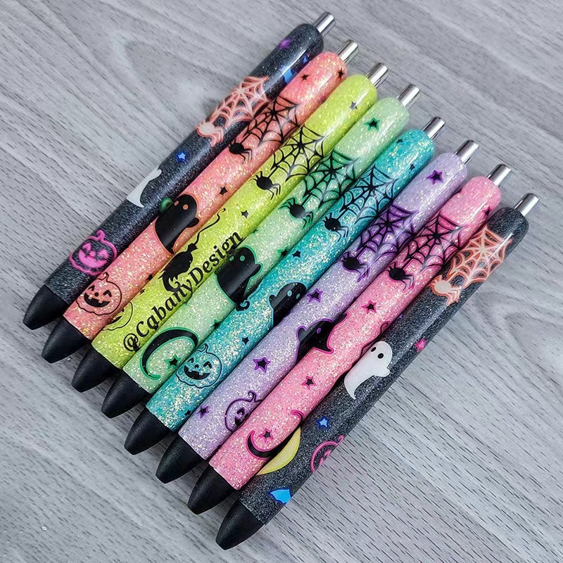 Wholesale 8pcs/PACK pens Halloween Glitter Pastel Flash Pumpkin Spider Pattern Colorful Clickable Ballpoint Pen