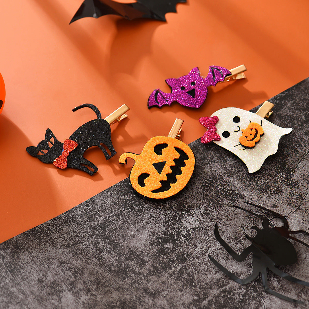 Wholesale Halloween Cartoon Pumpkin Cat Bat Ghost Leather Kids Hair Clips