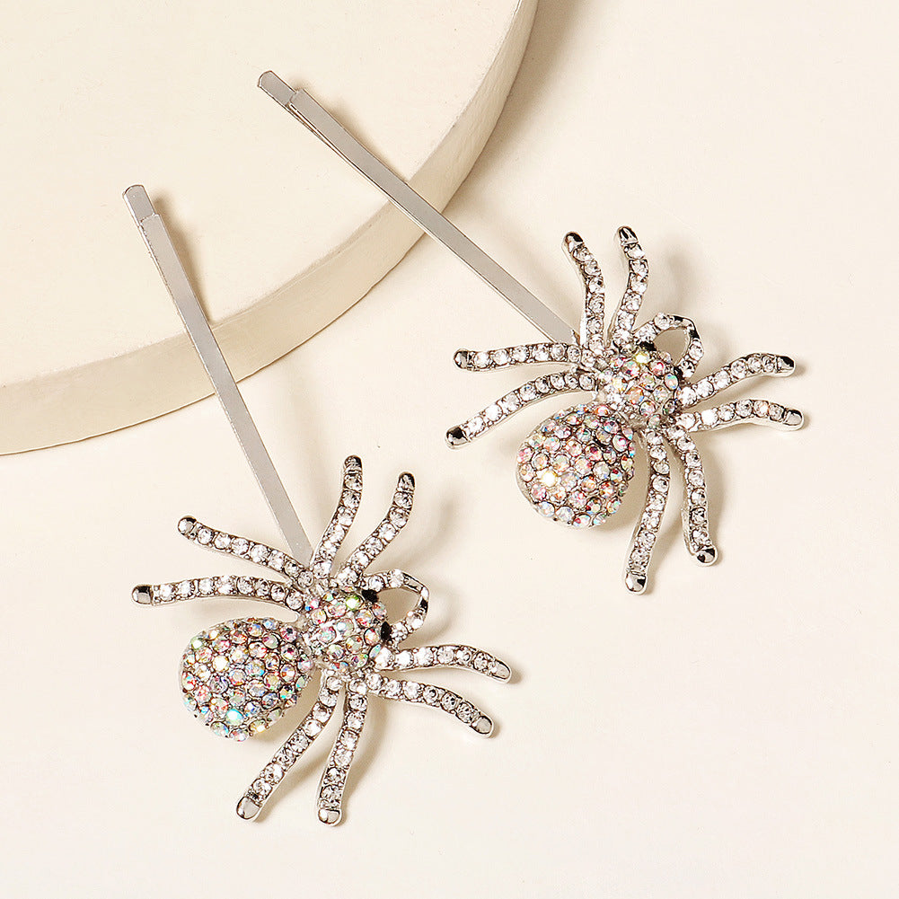 Wholesale Halloween Colorful Rhinestone Spider Alloy Straight Hair Clip