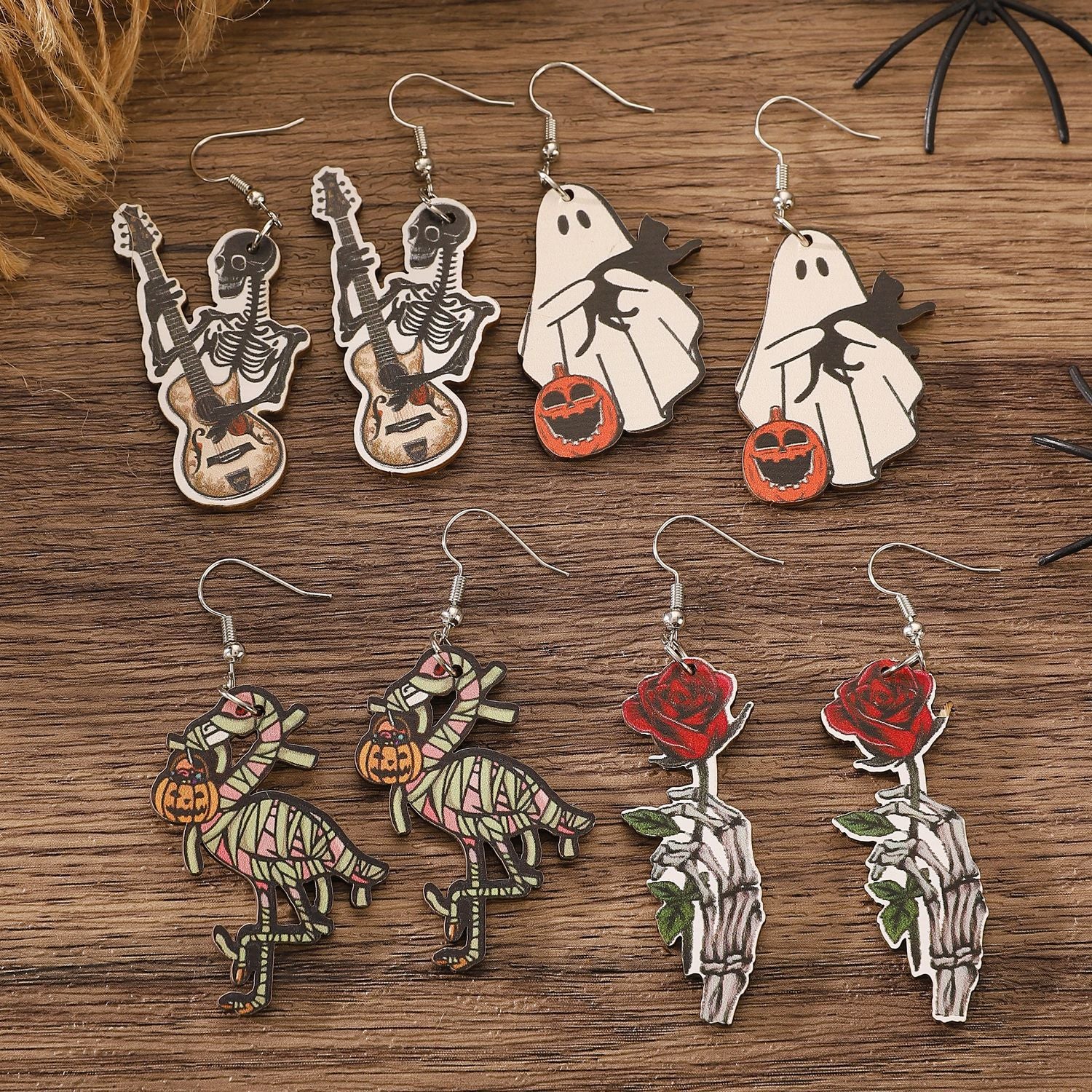 Wholesale Halloween Skeleton Flamingo Pumpkin Ghost Wooden Pendant