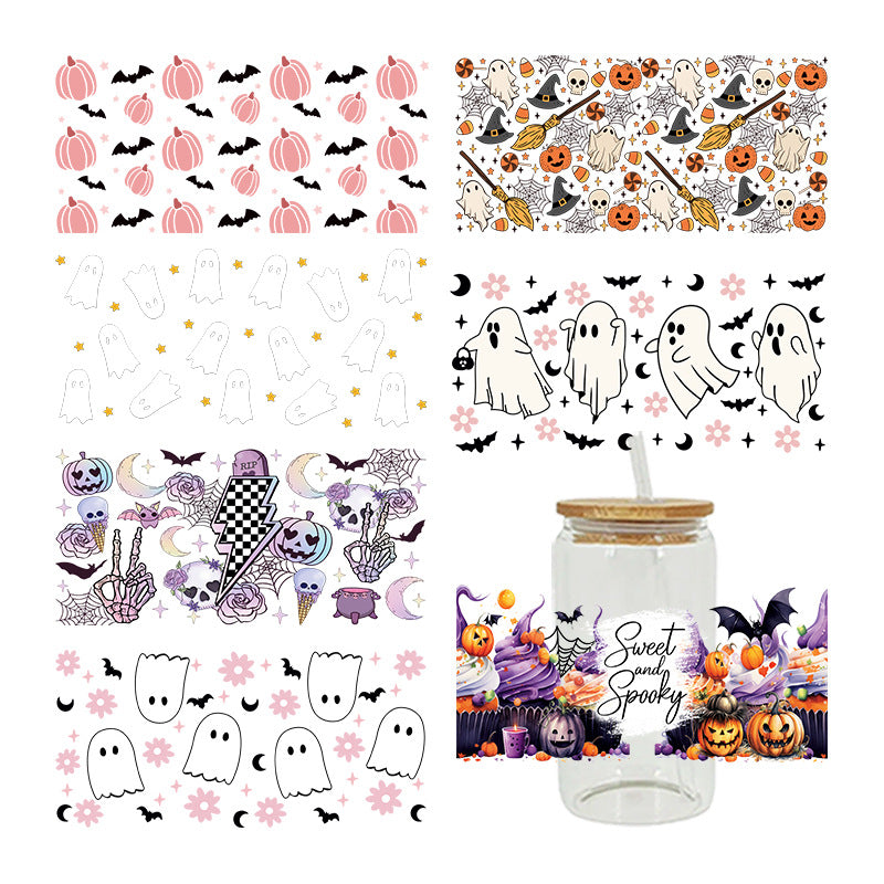 Wholesale Pumpkin Ghost Halloween 16oz Cup UV DTF Wraps