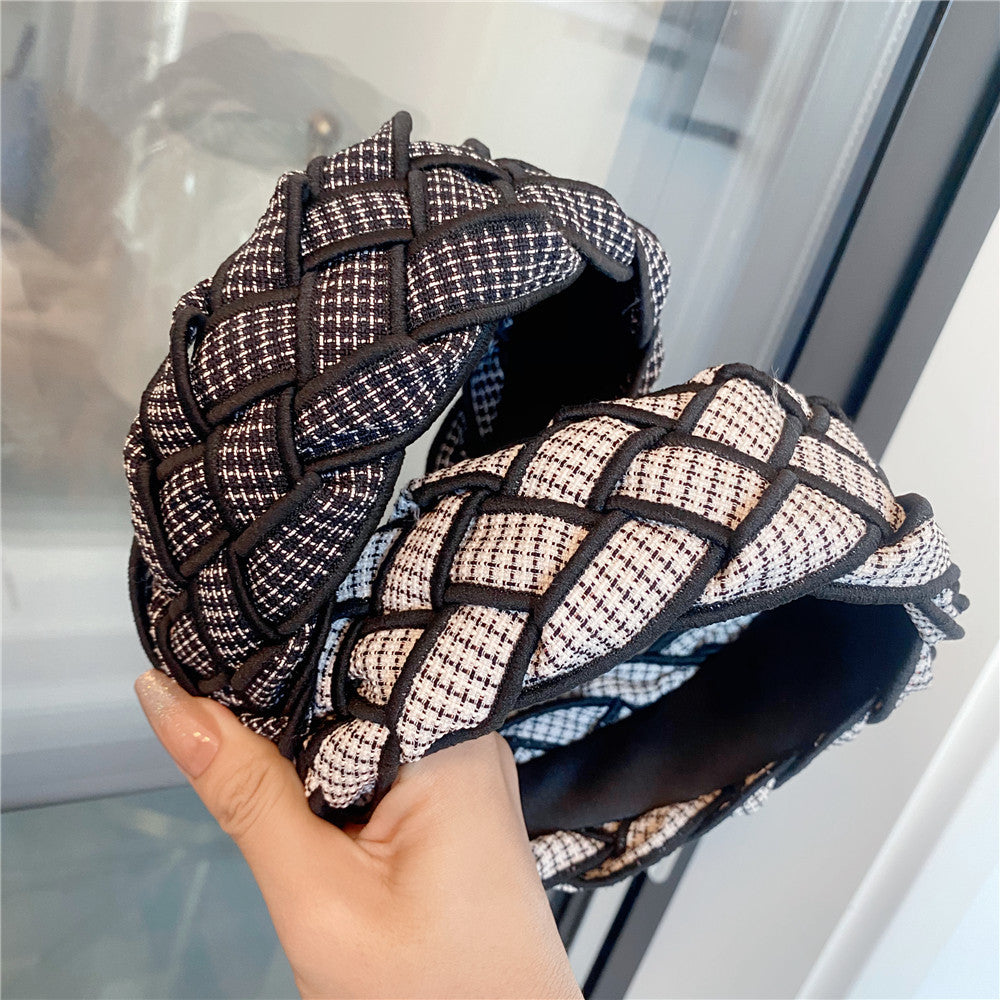 Wholesale Autumn and Winter High Skull Wide Edge Braided Houndstooth Headband