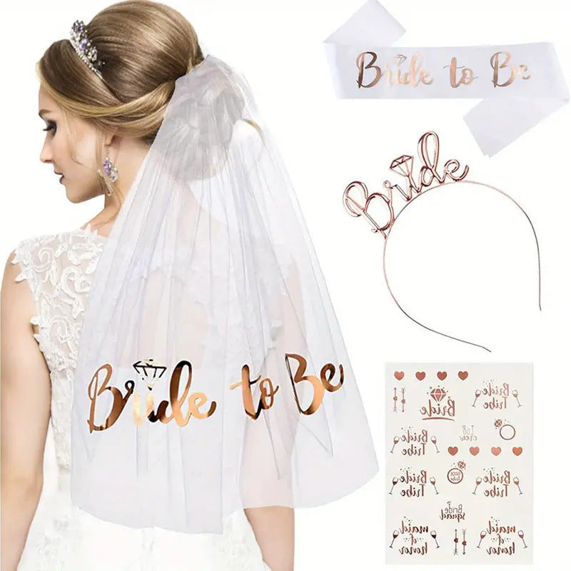 - White hemmed veil three-piece set
