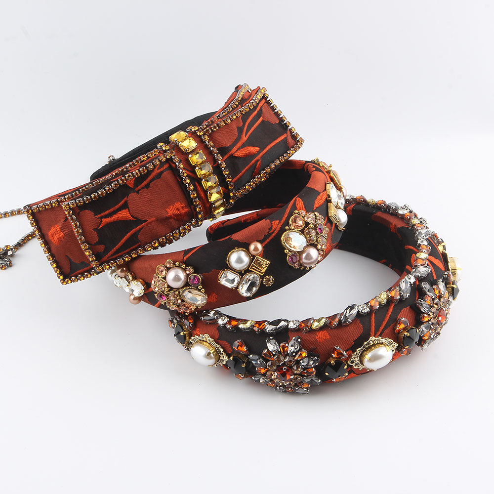 Wholesale Baroque Cross border Sponge Inlaid Diamond Hair Hoops