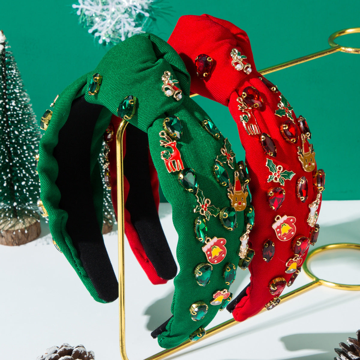 Wholesale Christmas Plus Cotton Headband Hand-stitched Glass Diamond Alloy Christmas Hair Ornament