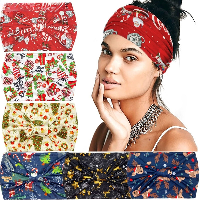 Wholesale Christmas Printed Hairband with Wide Edges and Knotted Elastic Headband Cartoon Santa Claus Headscarf