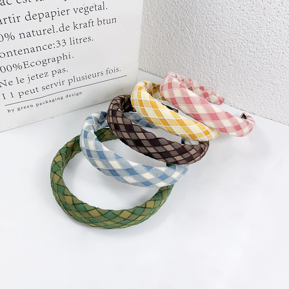 Wholesale Color Fabric Plaid Wide Edge Sponge Hair Hoop