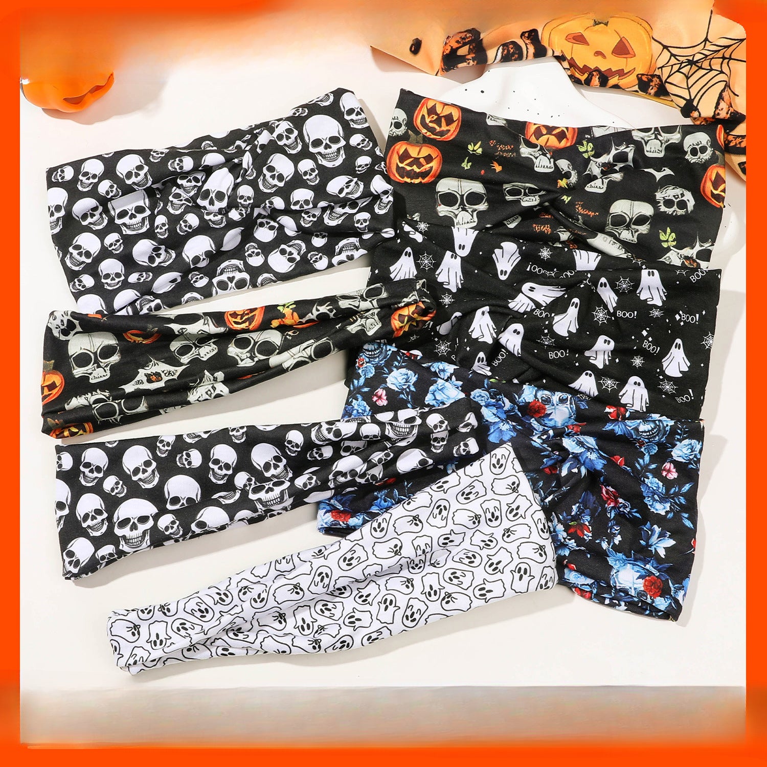 Wholesale Cross Border Halloween Skeleton Ghost Face Wash Hair Bands Scary Flat Cross Hair Ties