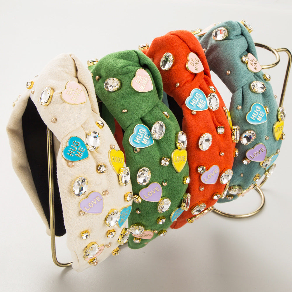 Wholesale Diamond Inlaid Love Fabric Valentine's Day Hair Bands