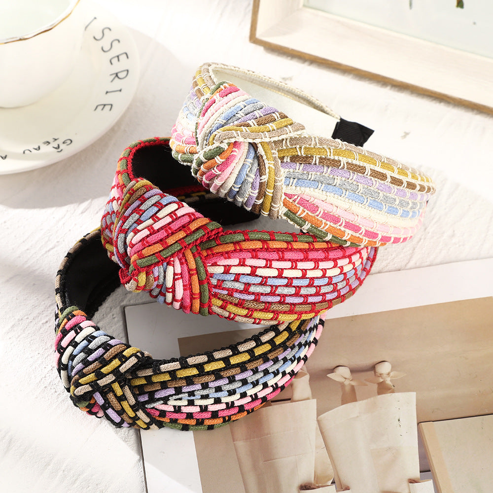 Wholesale Fabric Rainbow Rope Knotted Wide Brim Headband