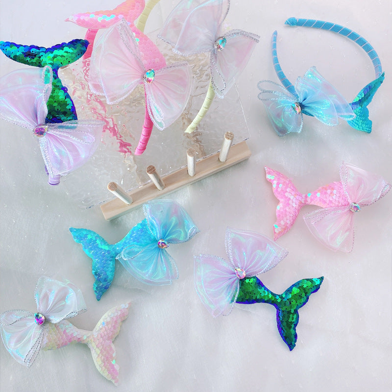 Wholesale Laser Sequins Mermaid Bow Knot Headwear for Kids