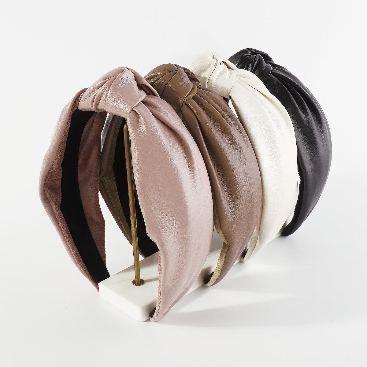 Wholesale Matte Leather Velvet Patchwork Knotted Headband