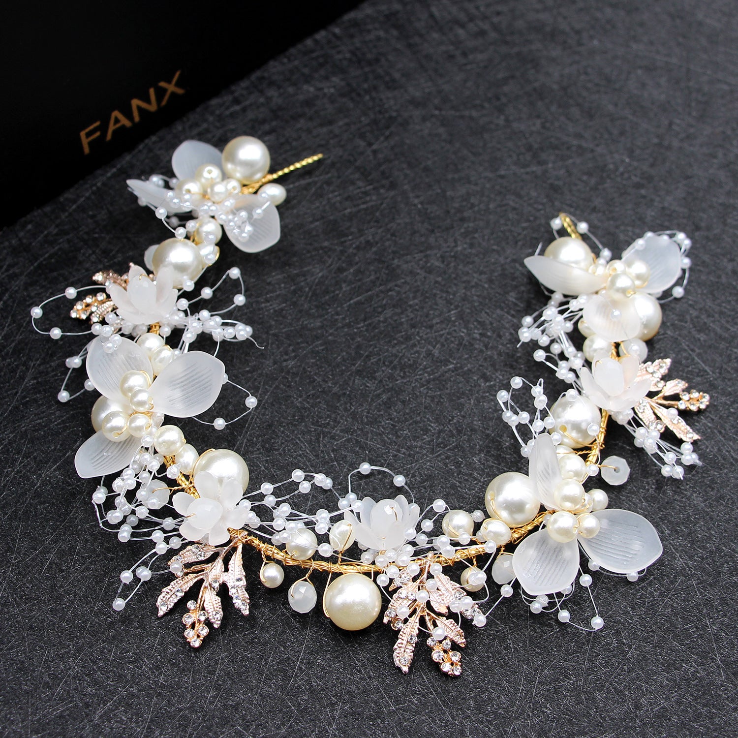 Wholesale Pearl Flowers Handwoven Gold Leaves Headband