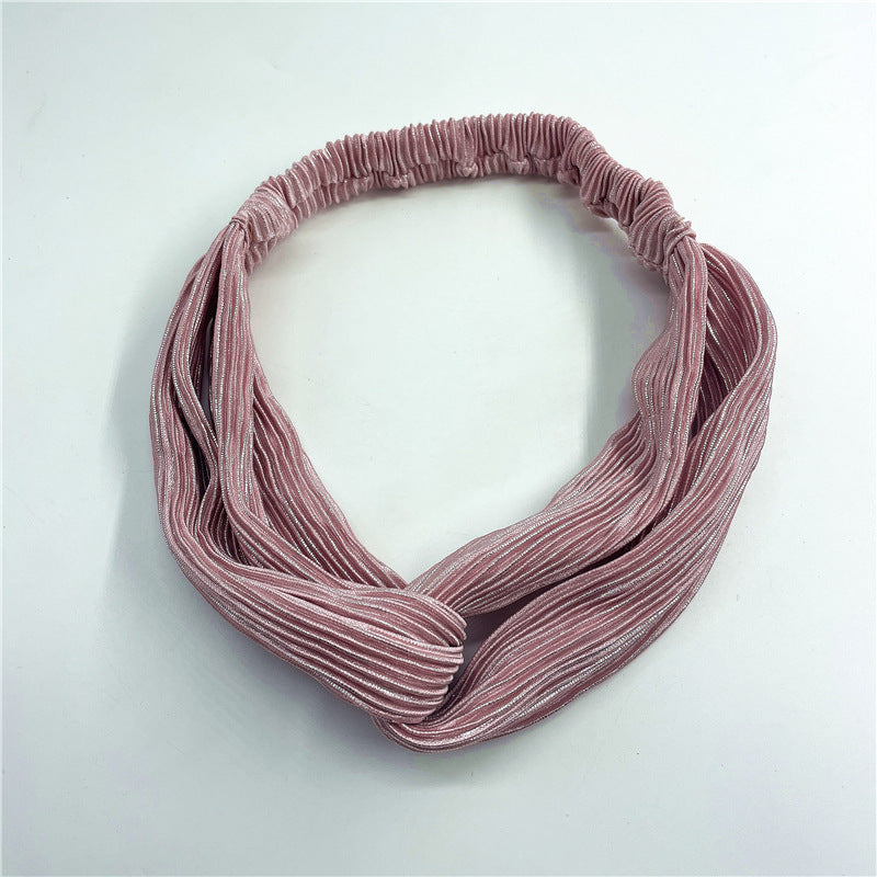 Wholesale Pleated Bright Silk Wide-brimmed Cross Headband Ladies Face Wash Headband