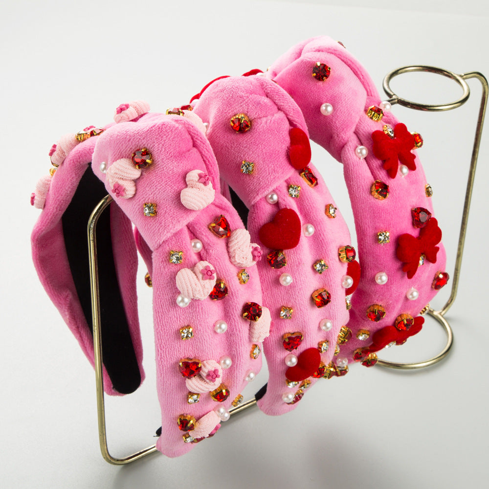 Wholesale Valentine's Day Series Pink Velvet Diamond and Pearl Love Headband