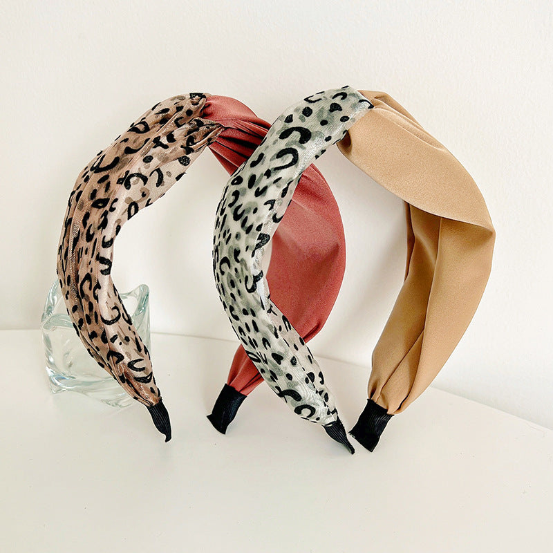 Wholesale Vintage Stitching Wide Brim Leopard Mesh Cross Headband