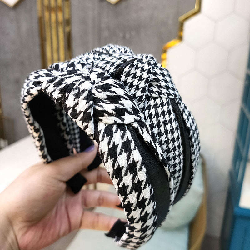 Wholesale Wide-brimmed Houndstooth Leather Knotted Headband