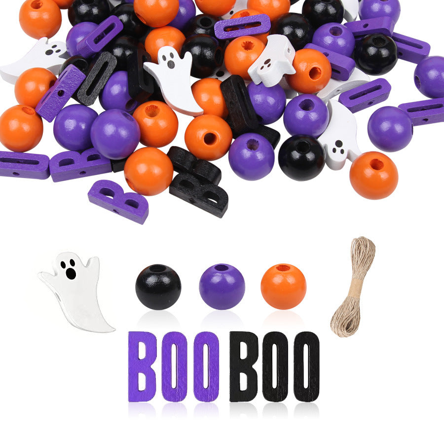 Wholesale 20pcs Halloween Bat Pumpkin Tree Tassel Accessories Wooden Beads