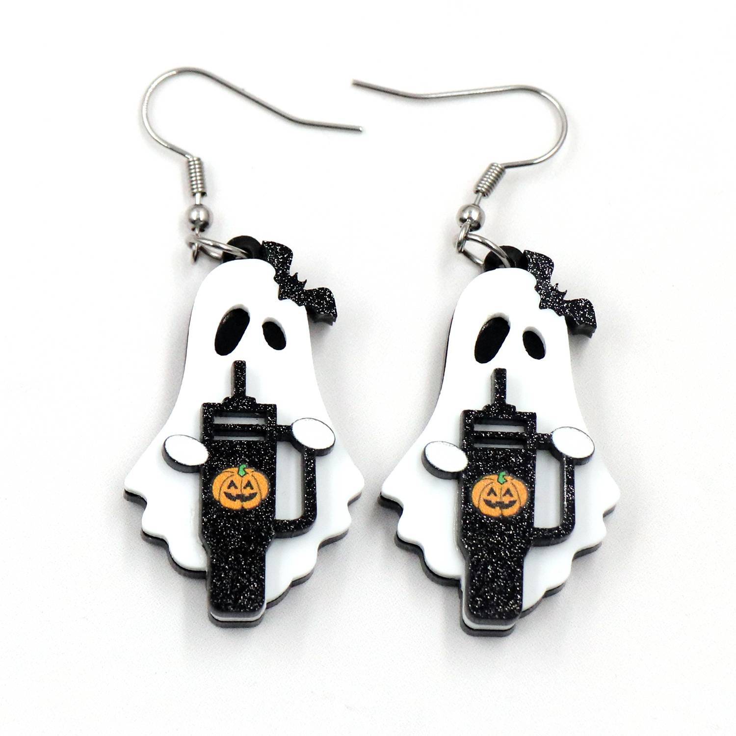 Wholesale 5pcs UV DTF Ghost Puppy Flower Knot Keychain Sticker