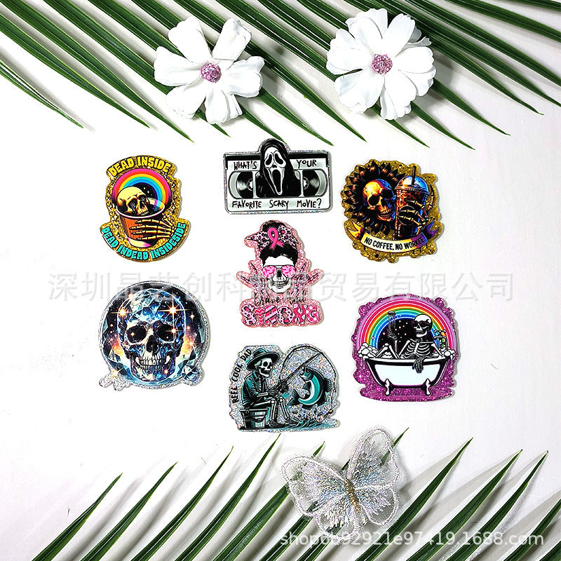 Wholesale 10 pcs/pack Sequin Halloween Skull Acrylic DIY Accessories