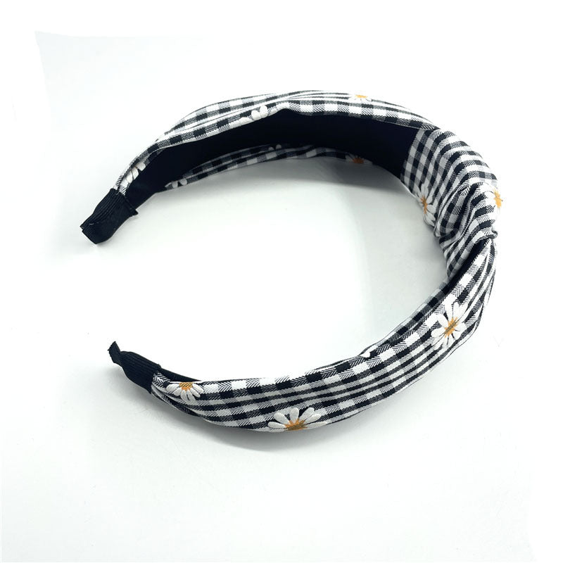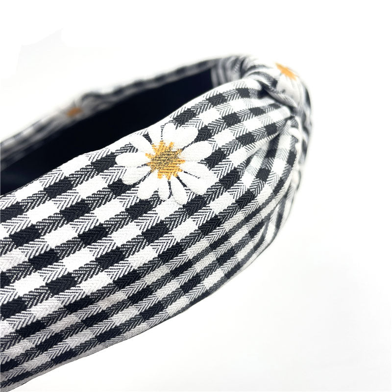 Wholesale Vintage Black and White Checkered DaisiesKnotted Headbands