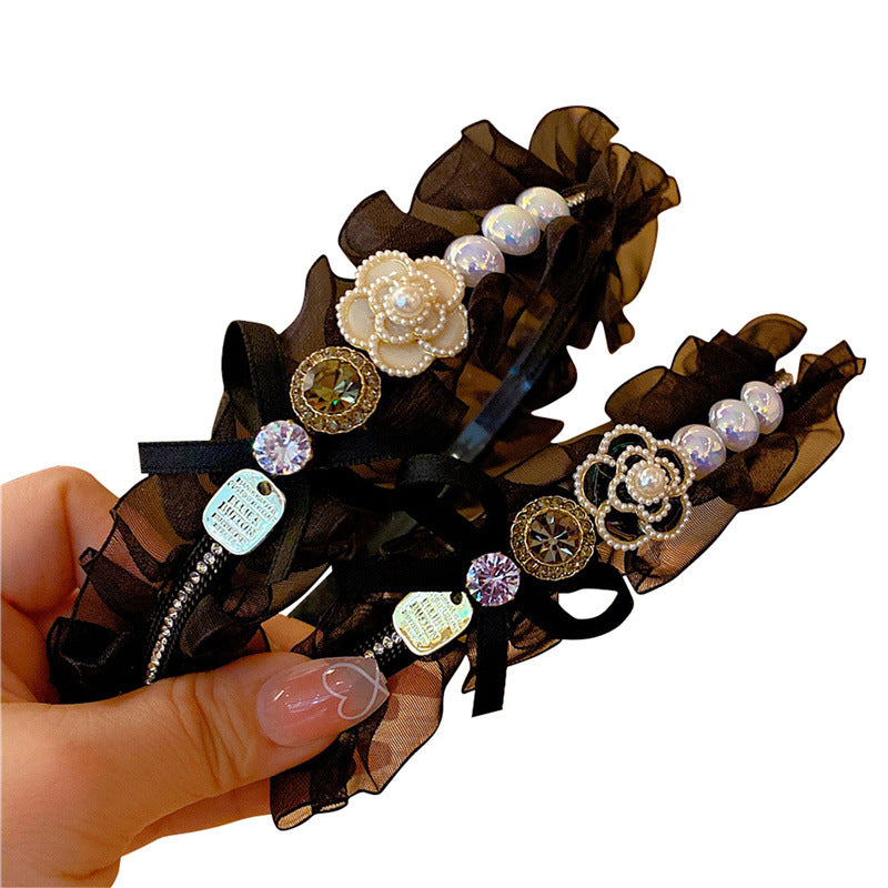 Wholesale Vintage Pearl Camellia Headband Baroque Rhinestone Headband