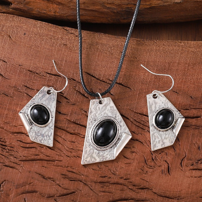 Wholesale Irregular Inlaid Black Gem Pendant Earrings Necklace Geometric Niche Simple Versatile Set