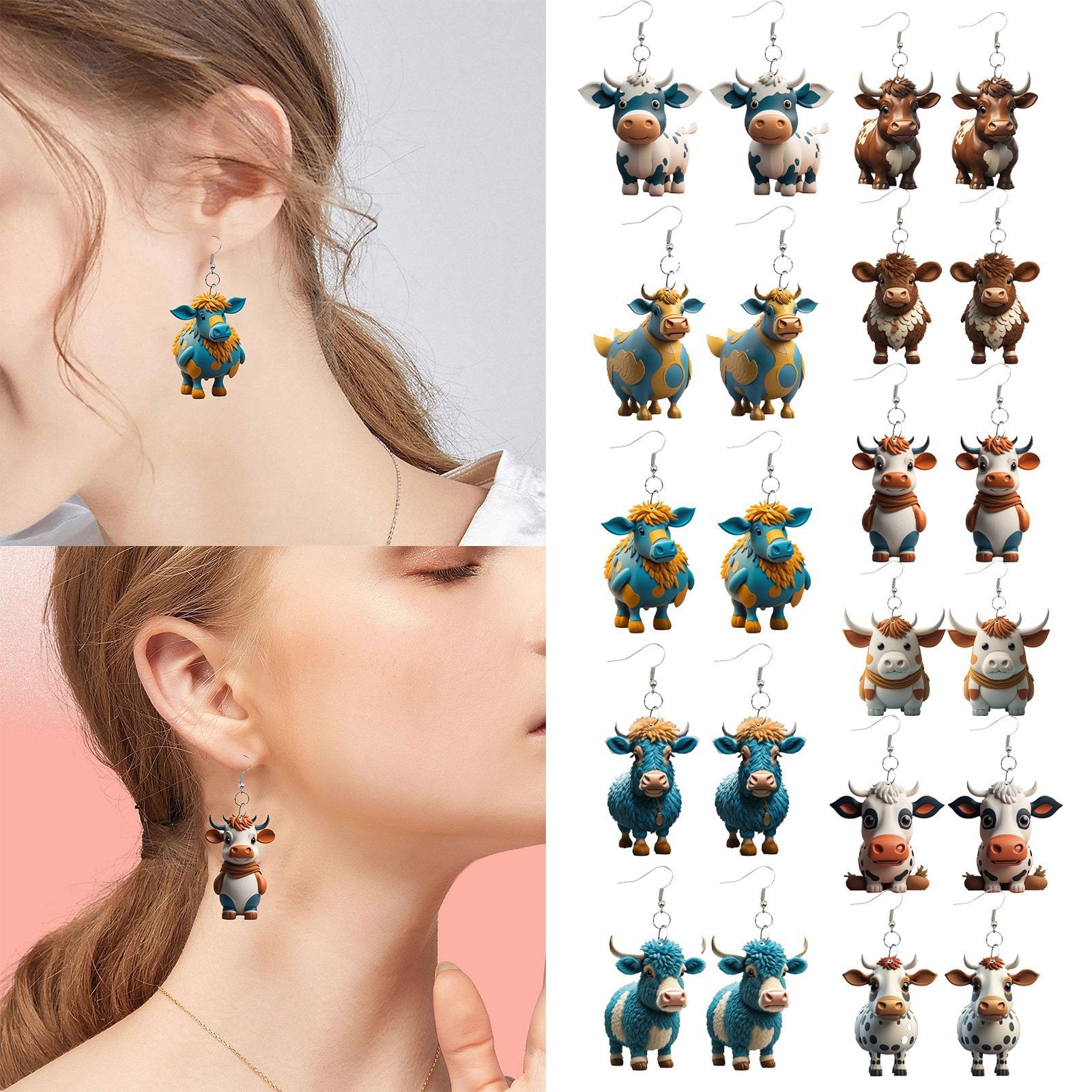 Wholesale Cartoon Cute Farm Yak Creative Acrylic Earrings