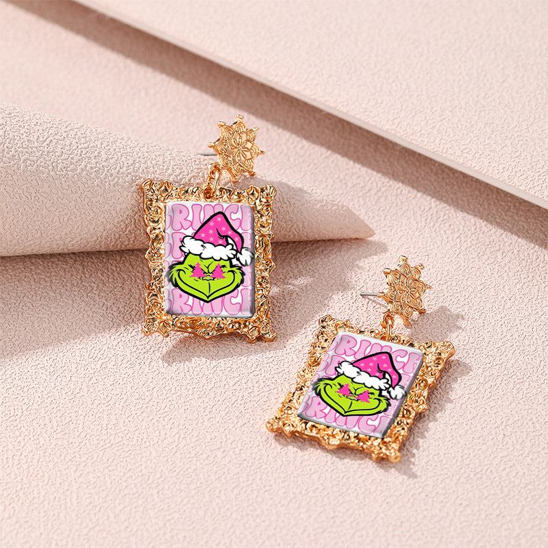Wholesale Christmas Vintage Gold Geometric Square Frame Earrings
