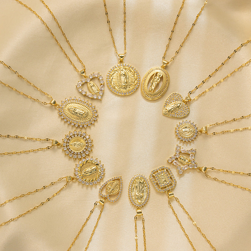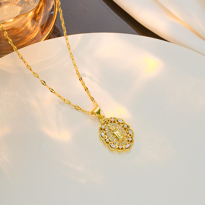 Wholesale Clavicle Titanium Zircon Light Madonna Religion Necklace