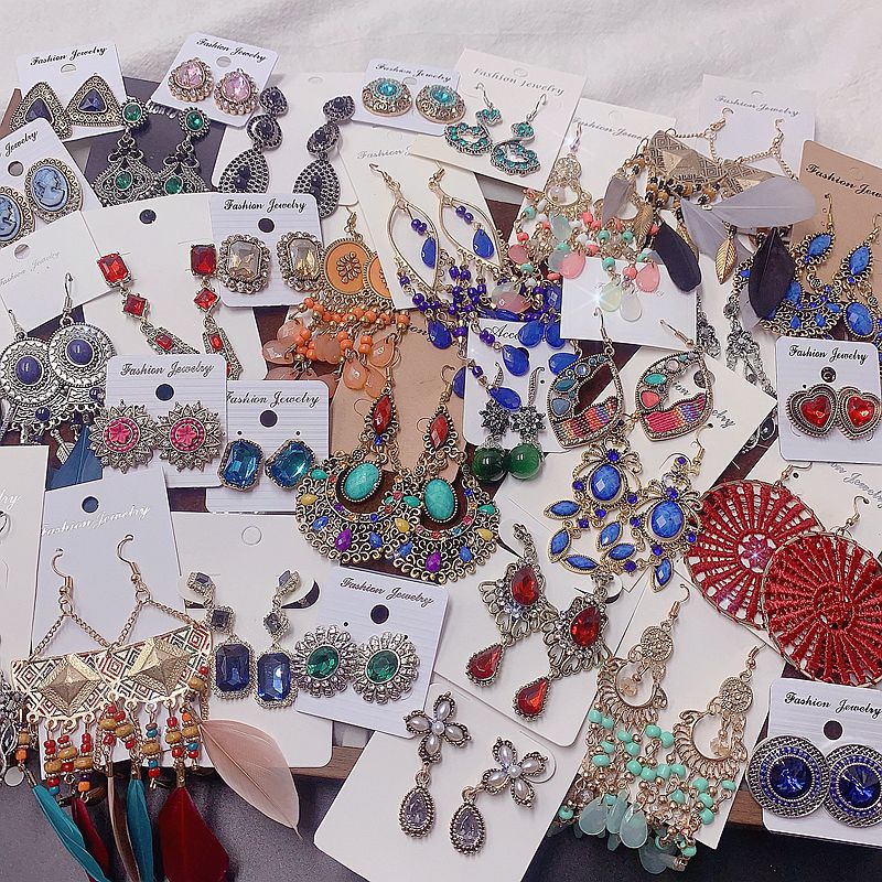 Wholesale Fashionable Vintage Exaggerated Real Gold Galvanized Gemstone Earrings
