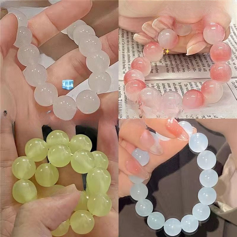 Wholesale Ice White Jade Gradient Pink Glass Bracelet
