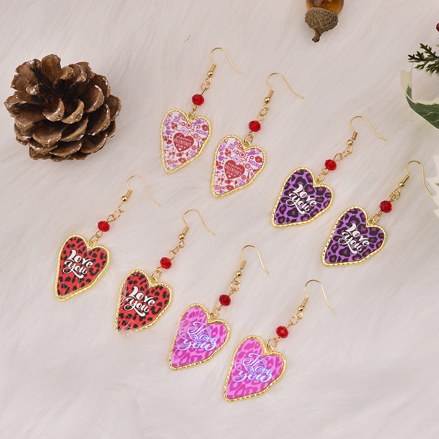 Wholesale Leopard Love Valentine' s Day Love Letter Earrings